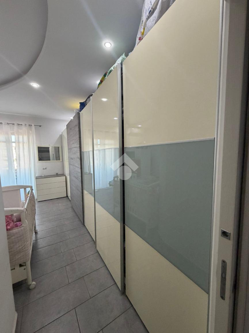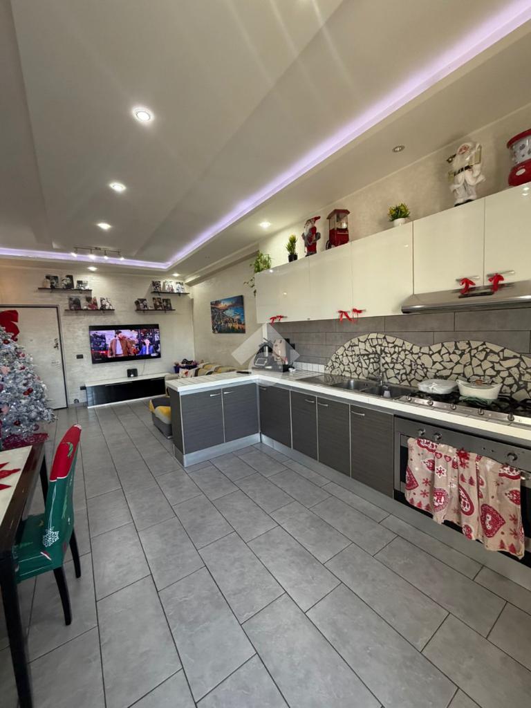 L’ingresso conduce a un ampio salone con cucina open space, un ambiente spazioso e luminoso, grazie alla presenza del balcone che garantisce un’ottima esposizione e una piacevole vivibilità degli spazi.