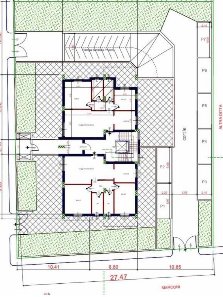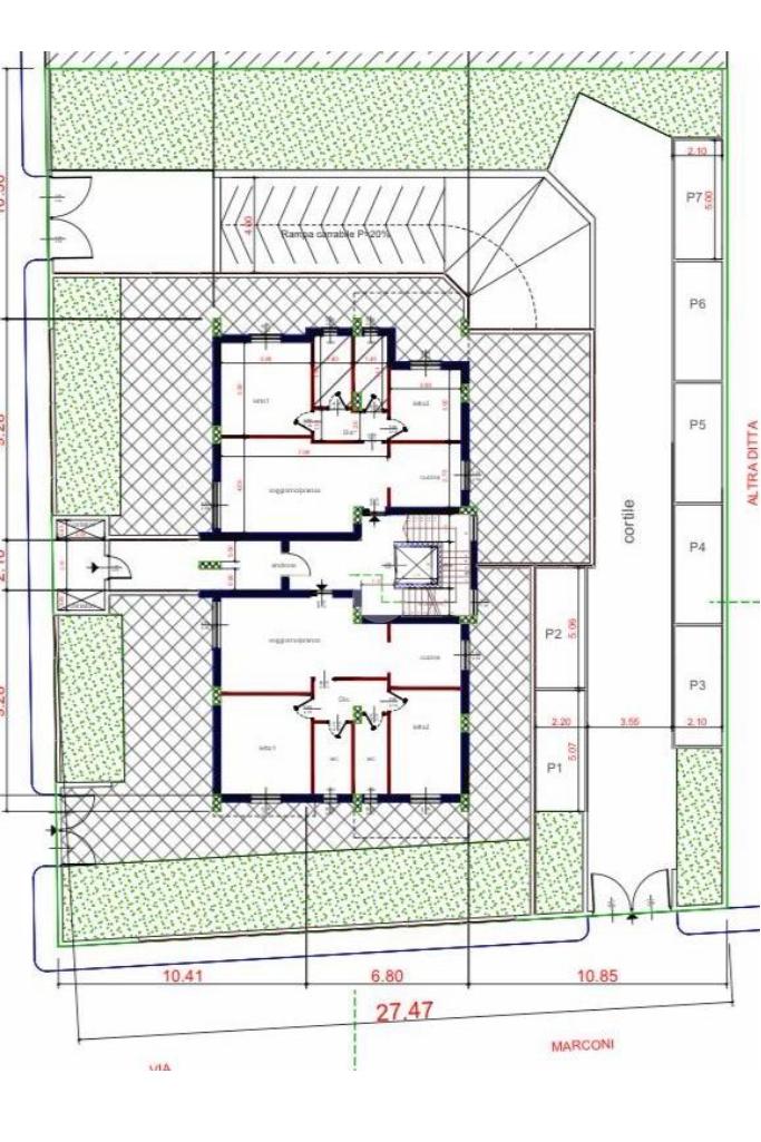 Il complesso dispone anche di uno spazio verde comune, curato e pensato per offrire tranquillità e benessere ai residenti.